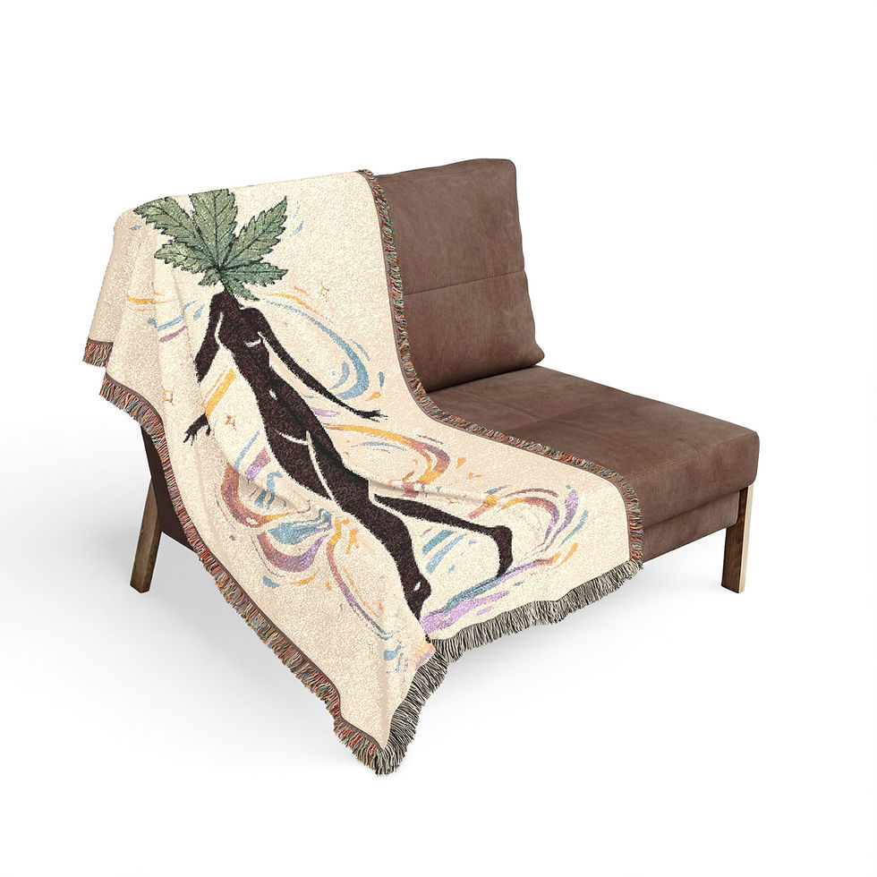 Cannabis Goddess Woven Blanket — Psychedelic Leaf Silhouette Throw