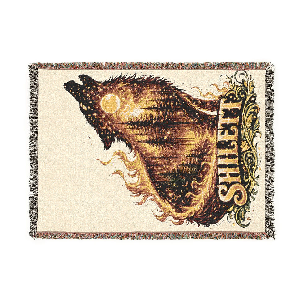 Woven Blanket — Fire Wolf Tapestry Throw ("SHILETT" Text)
